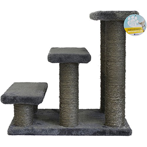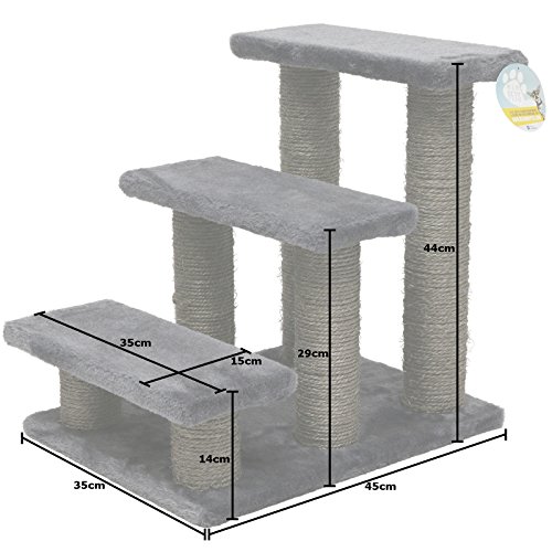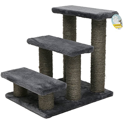 Me & My Pet Steps Climbing Aid – 3 Step Pet Stairs – Grey Fleece Steps with Sisal Poles