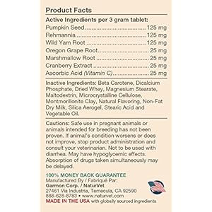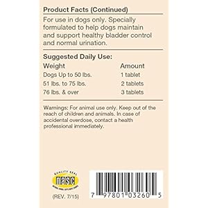 Veterinarian formulated with Cranberry Extract to help support the immune system and Marshmallow Root which lubricates mucous membranes, senior bladder support helps senior dogs maintain and support healthy bladder control and normal urination.