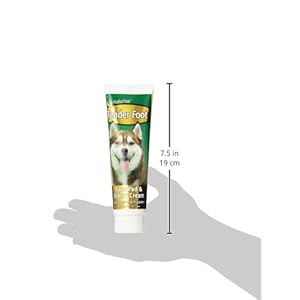 Cream repairs and restores lost resiliency to foot pads exposed to snow, ice, chemicals, hot sidewalks, black top, rough terrain, briars or nettles