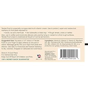 Easy to use, Tender Foot contains Vitamins A and E to help regenerate skin damaged by harsh elements. Humectants contained in this non sticky, disappearing cream base assist in maintaining skin and tissue in natural moisture balance. Use daily to moisturize and restore resiliency to dry, cracked, chapped or calloused skin, tissue, foot pads and elbows.