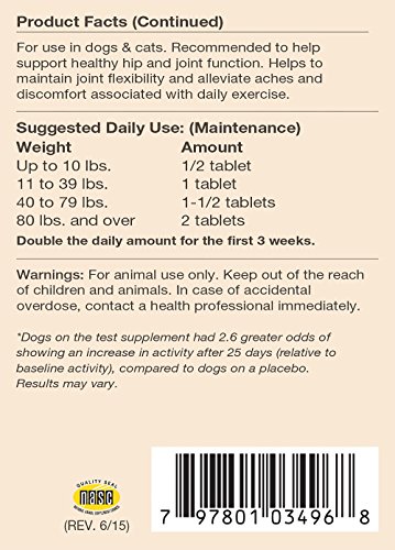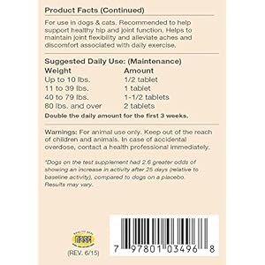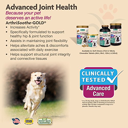 The BEST joint formula available for dogs suffering from severe joint, cartilage and tissue damage. ArthriSoothe-GOLD provides optimal levels of Glucosamine, Chondroitin, Green Lipped Mussel, Hyaluronic Acid and MSM. This combination is recommended to help support, maintain, and contribute to rebuilding damaged cartilage and tissue. It helps improve joint mobility and reduce stiffness. The antioxidants Ester-C (Vitamin C) and Vitamin E help protect against free radicals that cause cellular damage. Veterinarian formulated and recommended to support healthy hip and joint function. Helps to maintain joint flexibility and alleviate aches and discomfort associated with exercise. ArtiSoothe-GOLD helps to support synovial fluid that lubricates the joints, and helps maintain cartilage and connective tissue.