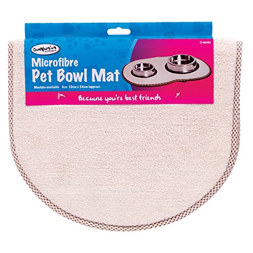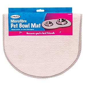 The microfibre pet bowl mat helps to protect floors from splashes and spills while providing a cushioned mat which pets can drink and eat from in comfort.