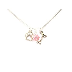 Dog Paw Print and Dog Bone Necklace With Swarovski Elements