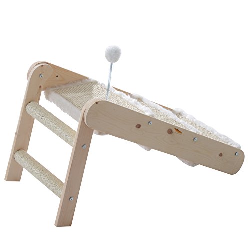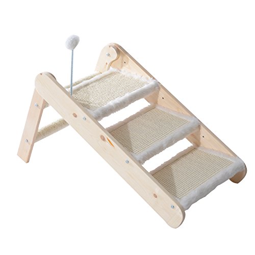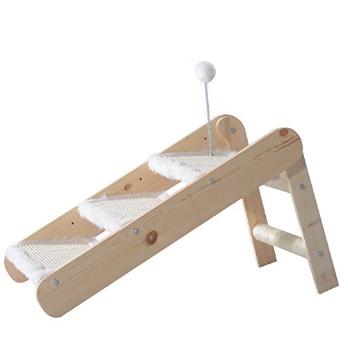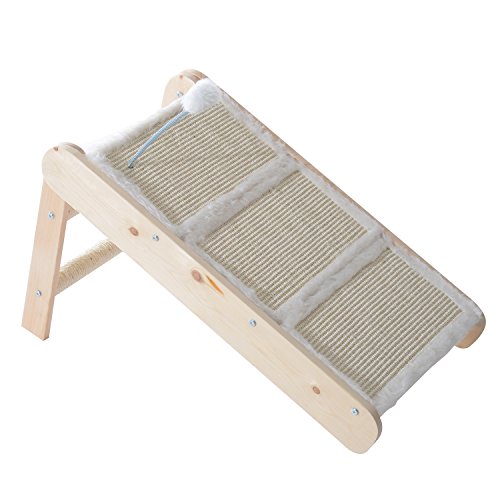This PawHut 3 in 1 foldable cat ramp is a great item to have for your pet, use it as a ramp, ladder and a scratcher. You can assemble as you require and make the ideal choice for your pet. Made using pine wood with a rope sisal for your pets enjoyment, there is also a toy at the top of the ladder for your pets entertainment. The ramp is a great place for your pet to naturally climb and scratch and the functional design can help your cat to reach places.