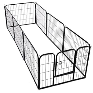 This pet playpen are perfect for a variety of pets. It can be easily set up for indoor and outdoor use. 8 durable panels could be folded up for easy storage. Sturdy metal wire with anti-rust coating ensures long time use. It will be a secure protection area for your pets’ living and romping around outdoors without your worries.