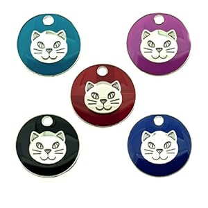 Personalised Enamel Pet Tag – Cat Face Design in 5 bright eye catching colours.