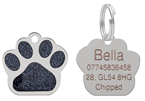 Personalised Engraved ID Pet Tags Glitter Paw Design Quality 27mm Dog Tags