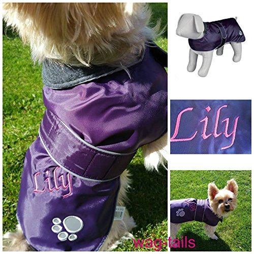 Personalised Purple Dog Rain Winter Coat PINK NAME Birthday Christmas Gift