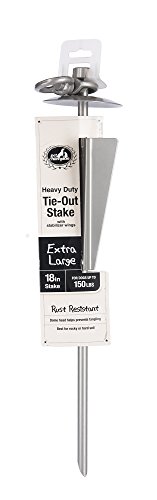 This 100% steel stake can stand up to the tugging and playing of most large breeds up to 150 pounds with the help of 4 stabilizing wings
