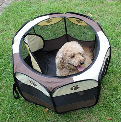 THIS PORTABLE & COLLAPSIBLE SOFT PLAYPEN IS NEW COMFORT DESIGNED FOR DOGS, CATS AND OTHER PETS, IDEAL FOR BOTH INDOOR AND OUTDOOR USE, PERFECT FOR HOME, YARD, CAR TRIP AND MORE.