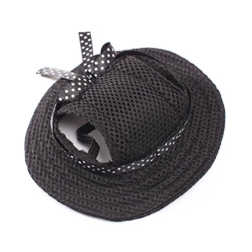Bowknot Decorated Black Pet Dog Mesh Porous Sun Cap Hat with Ear Holes for Small Dogs.