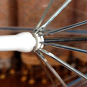 Umbrella leash attaches easily and quickly to pet’s collar.