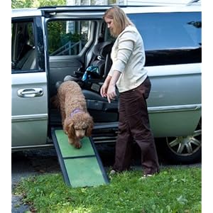 The Pet Gear Travel Lite Bi-Fold Pet Ramp allows your dog easy access into your vehicle or other hard to reach places. The tread is skid resistant, even when wet to keep your pet steady. The bottom of the ramp has rubber grippers to maintain its position. This lightweight ramp folds in half and has a carry handle for easy transport and storage.