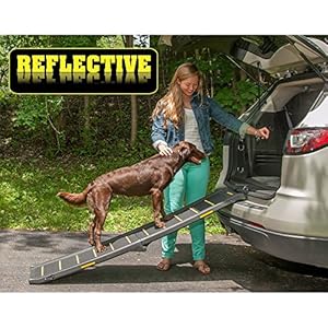 High-visibility reflective material aids in guiding your pet up and down the ramp