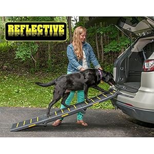 High-visibility reflective material aids in guiding your pet up and down the ramp;Side safety reflectors allow for maximum visibility when the ramp is in use;Slip-resistant surface provides sure footing and rubber grippers on bottom help keep ramp steady;Easy fold for compact storage and built-in handle for portability;Dimensions: 71L x 16W x 4H; suitable for pets up to 200 pounds;Please scroll below and read From the Manufacturer for exciting features