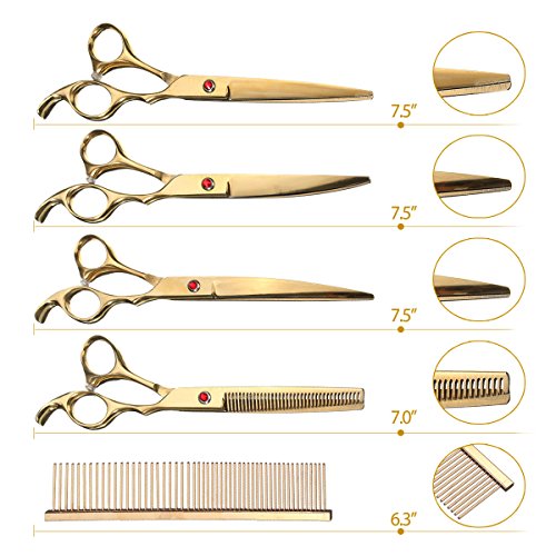 ★Professional Design – The blade of scissors is super smooth, sharp and durable, easy to create any hair style for your lovely pets. This process reduces the friction to shear pet hair. All the cutting tools come with razor sharp edges which help in the detailing aspect as well. Finishing and shaping of the coats is a breeze to do. Suitable for both long and short hair dogs and cats.