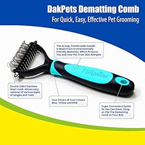 NO MORE KNOTS Not all Dematting Combs are created equal! Dakpets Dematting Comb separates and untangles fur for both dogs and cats with long, dense coats without yanking your pet’s skin or damaging their coat. Total peace of mind for you and your pet.