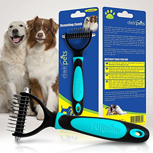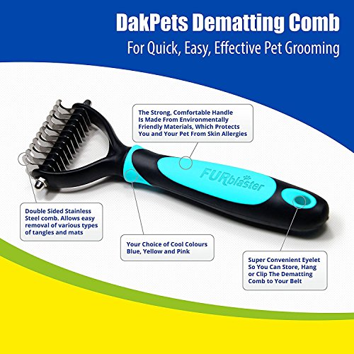 Pet Grooming Tool & Pet Grooming Brush by DakPets- For Small, Medium & Large Dogs + Cats, With Medium-Long Hair. Dramatically Reduces Matts & Knots In Minutes GUARANTEED! (Blue)