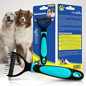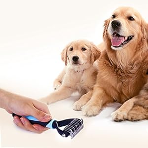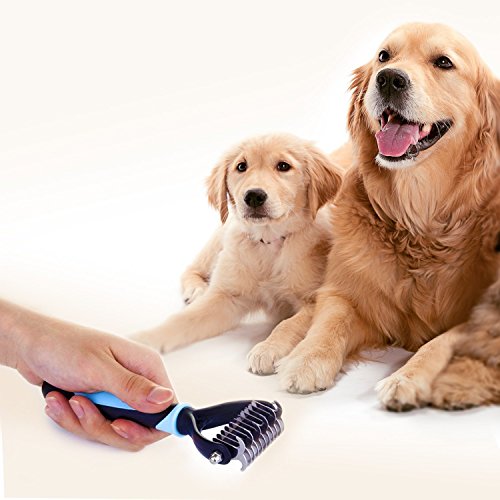 DOUBLE THE DEMATTING POSSIBILITIES Our pet grooming tool features a double-sided stainless steel blade with rounded teeth that takes on difficult knots and mats with ease without causing irriation to your pet’s skin