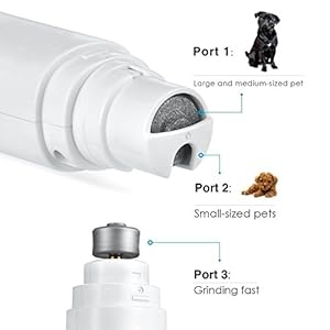 Suitable for MOST Pets. Three specially designed areas for doing nails. For different sizes of your pet and types of nails they have, it will offer corresponding solutions for trimming. One is for fast grinding, the other is for medium/large pets and another is for small pets.