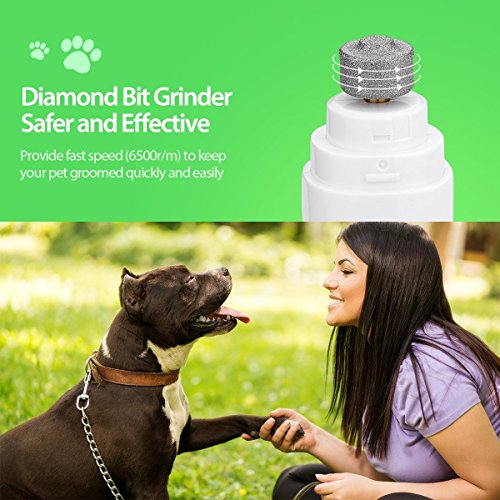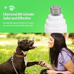 Premium Quality. Made of high grade diamond bit grinder and brass shaft, the electric nail grinder provides fast speed (6500r/m) to keep your pet groomed quickly and safely.