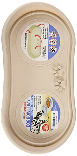 Both you and your furry friend will enjoy this pet bowl tray. It holds two 8 1/2” bowls, has a protective moat that keeps bugs out, has raised splash guards that protect the floor from food and water, and it’s dishwasher safe! The pet bowl tray is beneficial in more ways than one. This product is great for both large and small dogs. You’ll no longer have to worry about messy floors or ants, because of the raised splash guards and moat. Quick and easy setup and clean up. To setup, all you need to do is snap the legs on each of the four corners. No tools or screws required. To clean, remove bowls when finished, and place pet bowl tray in the dishwasher.