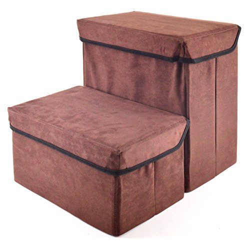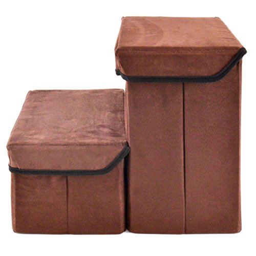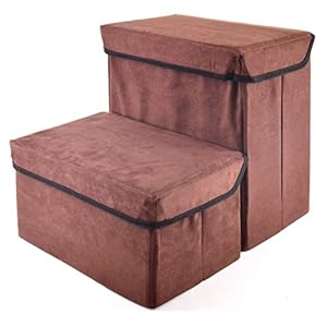 These pet steps are made from board-lined fabric. The lids open up to provide valuable storage space for toys, shoes and other items.