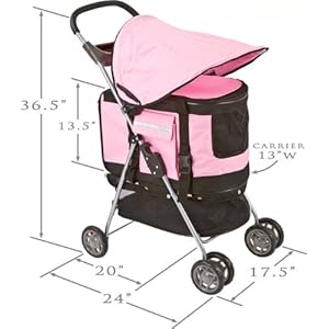 Durable 600 denier polyester, light weight steel frame, Rear lockable brakes keeps ride smooth and safe, Size of a stroller: 60cm x 44cm x 95cm, Size of a carrier: 50cm x 33cm x 34cm, Colour: PINK