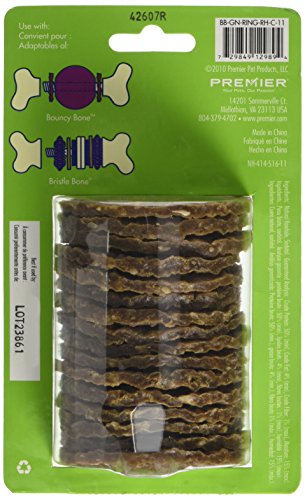 The Busy Buddy Gnawhide Rings are delicious chew treats that are designed to fit select Busy Buddy Bouncy Bone and Bristle Bone toys.