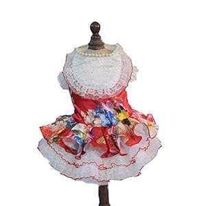 Cute Pearl Collar Flower Printing Style Dress For Dog.