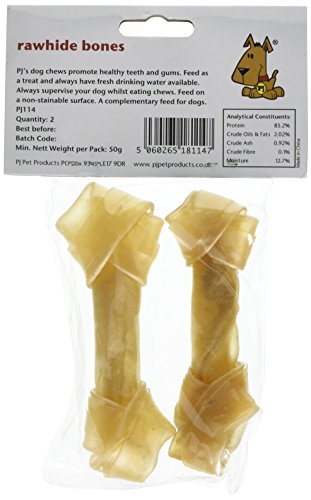 PJ Pet Poducts Rawhide Knotted Bones 10cm 20 x 30 g (10 x pack of 2, 20 bones)