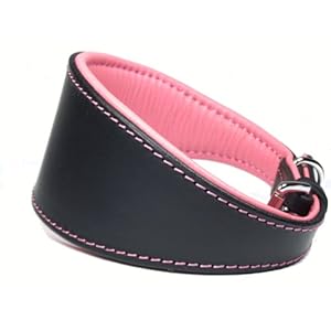 This black Ace whippet collar is lined with bubblegum PINK soft cow leather and finished with pretty pink stitching and chrome fittings.