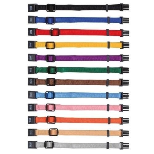 These collars are the ideal choice if you have a new litter of puppies and you want to easily identify your new babies or you just want to have a choice of colours available after bringing your new pup home. They are super soft, fully adjustable and will enable your puppy from a very early age to get used to wearing a collar. We offer these in packs of 3, 6 or 12. All colours will be different. There are 2 sizes available: Small to Medium Measuring 17 – 25cm / 10mm Medium to Large Measuring 22 – 35cm / 10mm Just choose the size and amount required from the options menu.