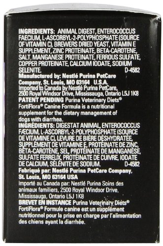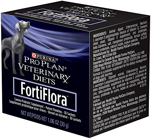 Purina FortiFlora Canine Nutritional Supplement contains the beneficial microorganisms found naturally in your dog’s digestive system to help manage and shorten episodes of diarrhea. Common causes of diarrhea for dogs and puppies include food changes, antibiotic therapy, and environmental stress.