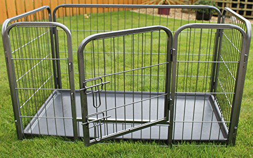 An excellent way of providing your pet with a secure and safe environment while allowing them to have fun playing inside or outside. Large cage measures: Length 125cm – Width 80cm – Height 70cm Colour: Dark Grey Speckle. Folds flat for easy storage and transportation. **IMPORTANT** Please do not use your cage for long periods of time until your pet is trained and feels comfortable. If your pet feels anxious or becomes agitated it may cause damage to the cage/pen or itself. The cage/pen is designed for your pet to be able to see clearly what is going on around it so it does not feel that the cage/pen is a ‘lonely’ place. This cage should never be used as a form of punishment, nor should your pet ever be forced into its crate. ** RayGar is a Registered Trademark **