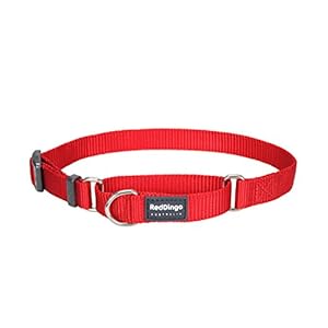 Red Dingo classic Martingale dog collar with buckle bone clip. Adjustable for perfect fit. Allows for maximum control over the dog without risk of choking, or escape by the dog by backing out.