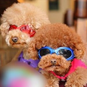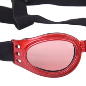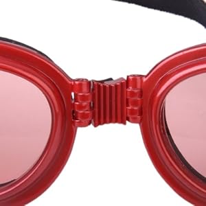 Accessorize your pet with this pair of pet dog sunglasses/goggles in red.