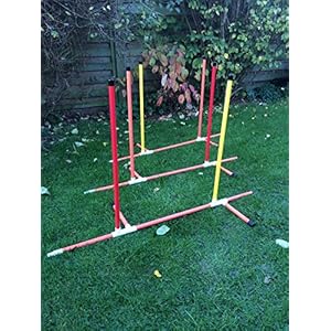 A training weave using a Upvc base which allows the poles to used on solid surfaces. The poles can be set upright or angled to train inexperienced dogs, or speed up slow dogs. As it comes in 3 x 2-pole secions it can also be used for 2×2 training (instructions included). At less than 2k in weight, this weave set is easy to carry and pack away. It folds neatly into 1.2 metre long package so it can be popped into the smallest car and off you go. 1 set gives you a 6 pole weave set. Two or more sets can be used together to give you 12 poles or more. Comes in Sections each one supporting two poles so can be coupled together as 2, 4, 6 if you buy the set of six or 8, 10, 12 if you buy two sets. Customers can buy several jessejump items and will be charged only once for postage. (due to amazons new postage policy we can only post this item to mainland uk (England, Wales, and Scotland only))