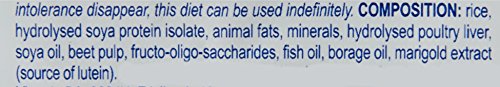 Veterinary diets are formulated for the nutritional support of dogs with specific clinical conditions and are recommended to be used under veterinary advice. For on feeding Hypoallergenic to your dog, please consult your veterinary surgeon. Points to note For the nutritional support of dogs under 10kg in cases of Food elimination trials, Food allergies with dermatological and/or gastrointestinal signs, Food intolerance, Inflammatory Bowel Disease (IBD), Exocrine Pancreatic Insufficiency (EPI), Chronic diarrhoea and Bacterial overgrowth. Soy protein hydrolysate which is composed of low molecular weight peptides, is highly digestible and of very low allergenicity. Very high amounts of biotin, niacin and pantothenic acid, in combination with the zinc-linoleic acid complex, help reduce water losses through the skin and support the barrier effect of the skin. Undersaturated urine is an environment where crystals cannot proliferate. Thus the urine is unfavourable to the development of struvite and calcium oxalate crystals. Sodium polyphosphate binds salivary calcium, making it unavailble for tartar formation.