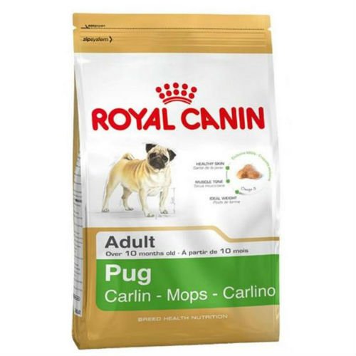 Royal Canin Pug Adult dry dog food developed especially for pugs from 10 months, with nutrient complex for healthy skin and special kibble shape to aid feeding and encourage chewing. Pugs are pleasant companion dogs full of dignity and charm. They are intelligent, happy and lively dogs. They have great courage and sometime underestimate danger. They can find it difficult to interpret signs of aggression in other dogs. Its gentle nature makes the pug the perfect dog to keep with other pets.