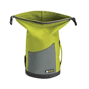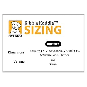 The Kibble Kaddie from Ruffwear is a travel-friendly dog food storage system. The compact, convenient design allows for easy transport, storage and dispensing of kibble. The top-loading, roll-down closure secures contents and reduces volume of the bag as food is consumed. Kibble is dispensed through the side-mounted food chute. External stash pocket fits collapsible bowls and other adventure essentials.
