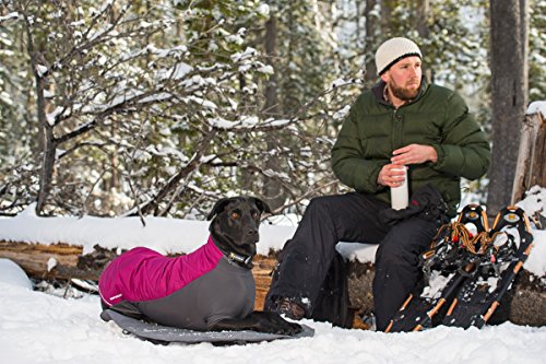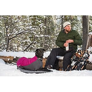 Synthetic insulation insulates dog from cold air and hard ground