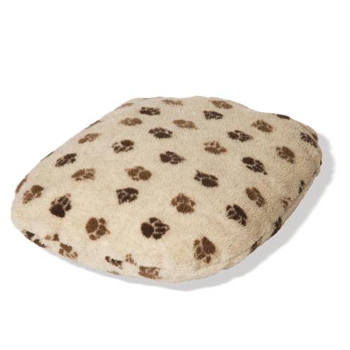 We have a whole range of spare or replacement covers for Danish Design oval fibre dog beds. Made from top quality materials, this premium Sherpa Fleece dog bed cover has a beige background with a cute brown and tan paw print motif. Also available in other colours.