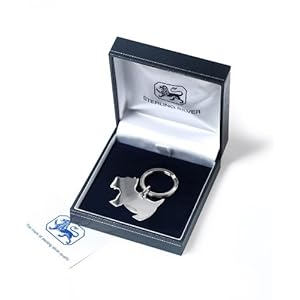 This Westie/Scottie key ring makes the perfect gift for any dog lover or owner. It has a modern,stylish look and is made from British sterling silver. It carries the hallmark 925 and will be forwarded to you in a presentation case.