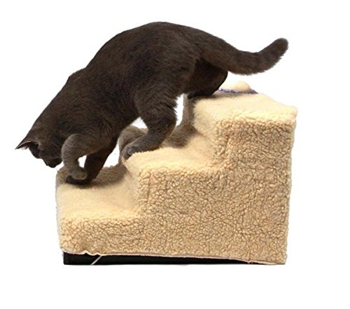 Sturdy pet steps help your pals get safely to a favorite spot. And keep you from straining your back. Save big give your pet the greatest gift of all. More companionship with you pet steps are a 3-step unit, essential for small dogs or cats struggling to join you on the couch or bed and ideal for older pets with hip or joint problems. They also ensure that your furry friends can climb securely into your car or truck and they save you from having to bend down, bend over and otherwise hurt your muscles. Wood construction. Non-skid surface. Hand-washable faux sheepskin cover looks and feels like the real thing.
