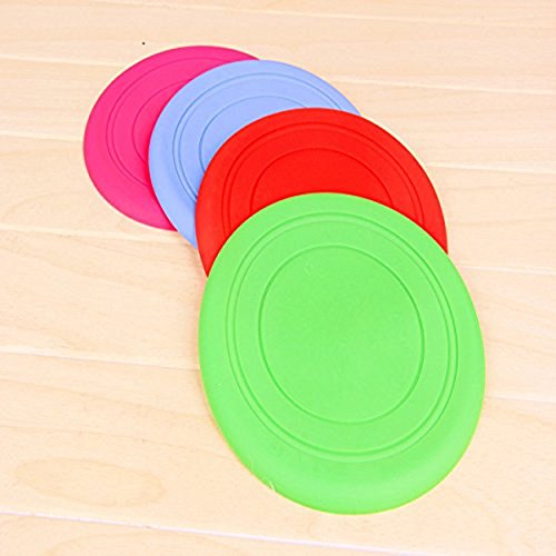 RUBBER FRISBEE SIZE APPROX 10CM DIAMETER. IDEAL FOR DOGS OR PUPPIES. RANDOM COLOUR SENT.