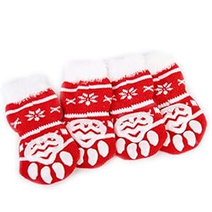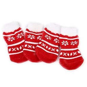 Snowflake-Pattern Small Dog Puppy Cat Non-Slip Socks with Paw Prints (XL)
