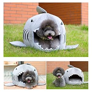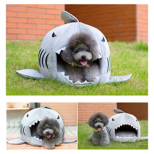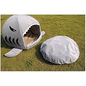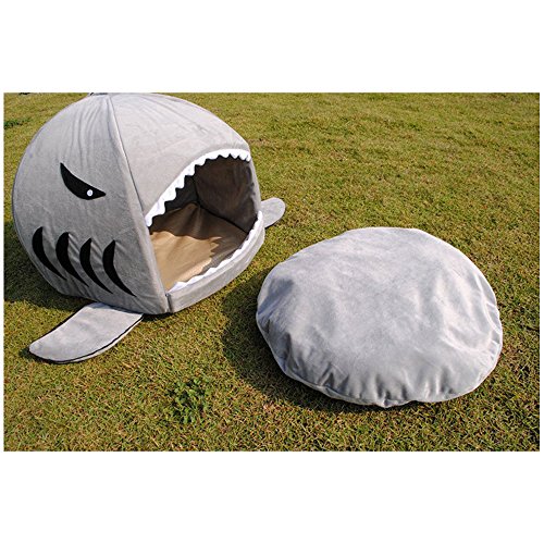 SODIAL(R) shark shape pet dog cat nest with pad S