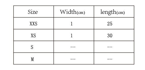XXS: 25cm x 2.5cm, adjustable length 17-22cm.