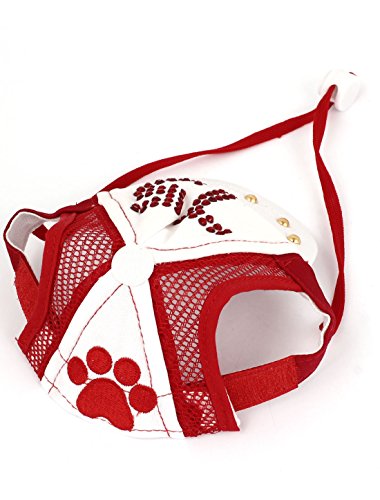 sourcingmap® Detachable Closure Netty Design Pet Dog Sun Block Cap Sunhat Hat White Red Size S